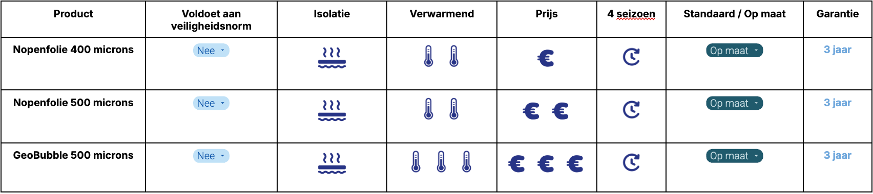 - Verwarmd : De GeoBubble is de meest efficiënte verwarmings noppenfolie